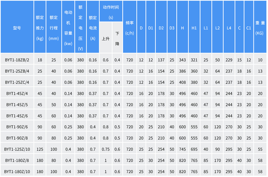 BYT1隔爆型電力液壓推動(dòng)器適用于夾緊裝置、閥門、閘門、唧筒等的驅(qū)動(dòng)和控制裝置。主要作為電力液壓鼓式制動(dòng)器的松閘使用,也可通過各種形式的杠桿裝置做各種不同的運(yùn)動(dòng)。